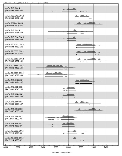Current archaeological chronologies across much of the South Caucasus and eastern Anatolia have been limited by a relative paucity of reliable radiocarbon determinations. Project ArAGATS has been working over the last decade to help augment the available data by creating sizable radiocarbon datasets for the sites in the Tsaghkahovit Plain and facilitating dates for other sites from across Armenia. These dates currently comprise the largest corpus of absolute dates for the South Caucasus and have provided the foundations for significant re-estimations of several key phases of South Caucasian (pre)history. For the most part, Project ArAGATS’s samples have been run by the AMS laboratory at the University of Arizona and calibrated using the most recent versions of OxCal calibration software.